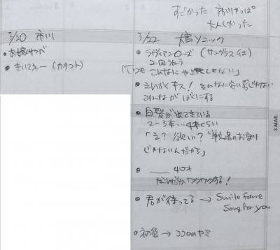 八雲さんを見つつ(←祭といいながら毎日細切れで見る日々。それはそれで至福!!)、片付けをしようと古い手帳を見てたら、ブログにUPしていないライヴメモを発見。